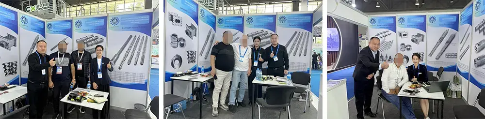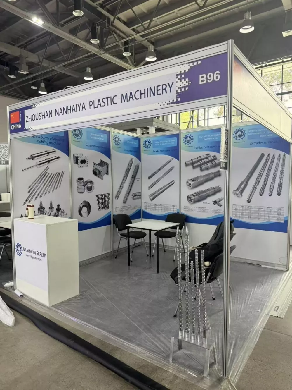 De la 21-a ĝis la 23-a de septembro 2025, Zhoushan Nanhaiya Plastic Machinery Co., Ltd. montris siajn malgrandigitajn ŝraŭbaĵojn kaj barelojn ĉe sia budo. Kun ĝia gvida eluziĝo-rezista teknologio kaj personecigitaj solvoj, la produktoj fariĝis ĉefaĵo de la ekspozicio, altirante multajn aĉetantojn de centraziaj landoj kiel Uzbekio kaj Kazaĥio.